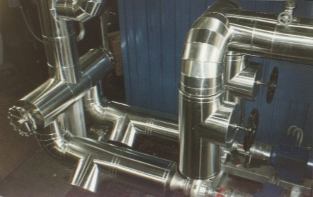 Caldaia, isolata con materassini in lana e rivestimento esterno in lamiera di alluminio 0,8 mm.