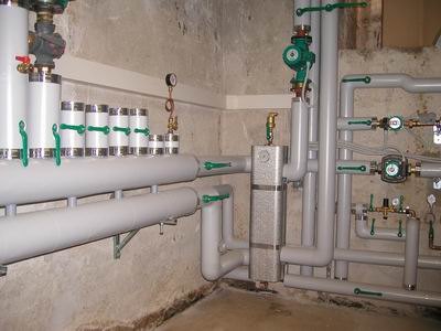 Tubazioni centrale termica, isolate con polistirolo e poliuretano, con rivestimento esterno in PVC.