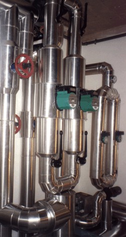 Tubazioni condizionamento bassa temperatura, isolate con gomma e rivestimento esterno in lamiera di alluminio 0.6 mm.